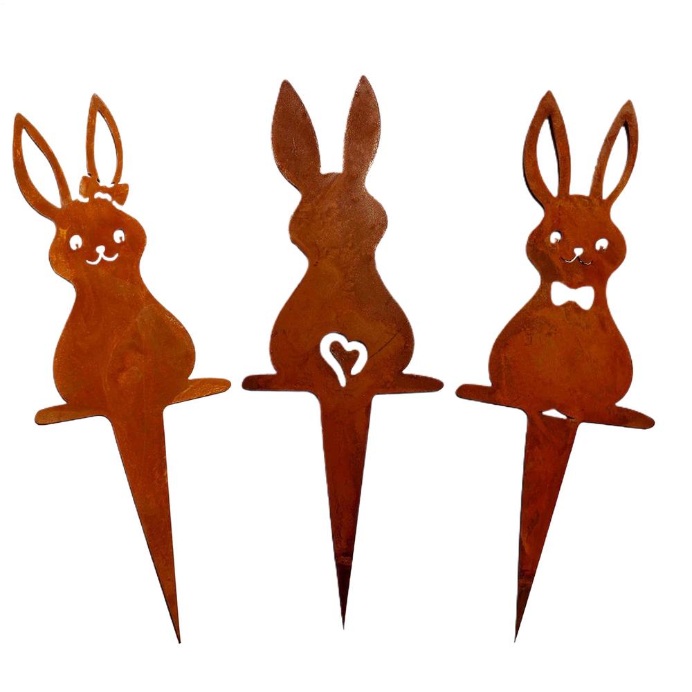 Easter three piece bunny yard garden insert decoration Rustic iron Rabbit Garden Stake Outdoor Yard Art for Farmhouse Decor
