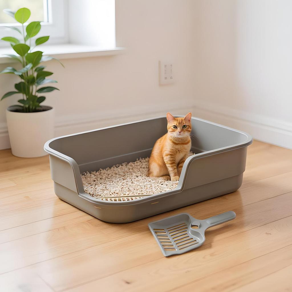 Large Litter Box Large Easy Clean With Scoop Open Top Semi Enclosed Litter Box For Odor Control Indoor Kitten Senior Pet Home