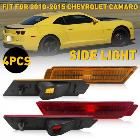 4 PCS Fit 2010-2015 Camaro Chevy Front Rear Side Marker Signal Lights Reflectors