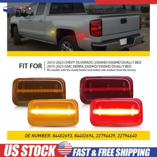 4Pcs Amber/Red Len LED Side Marker Lights Lamps For 2015- Chevy Silverado