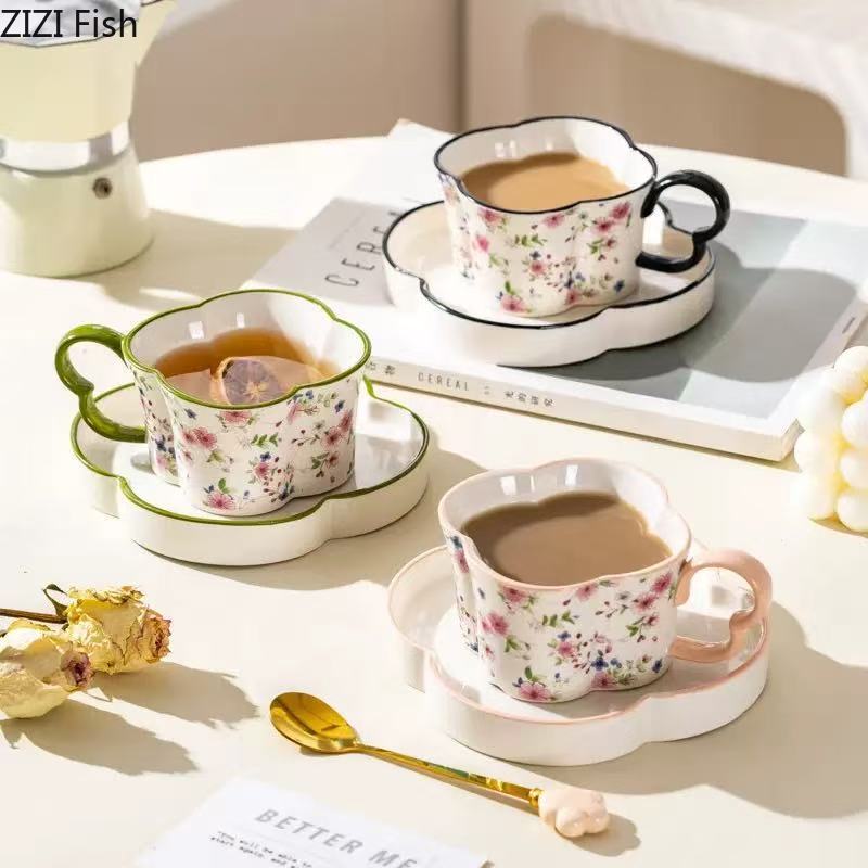 Plum Blossom Shaped Porcelain Cup&saucer Coffee Mug Tableware Dining Table Flower Mugs Afternoon Tea Teacup Fruits Juice Cup