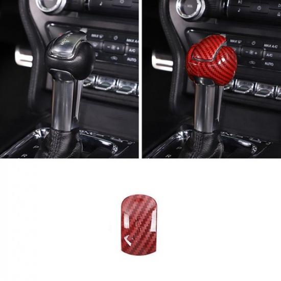 Central Console Gear Shift Knob Head For Ford Mustang 2015- Red Carbon Fiber