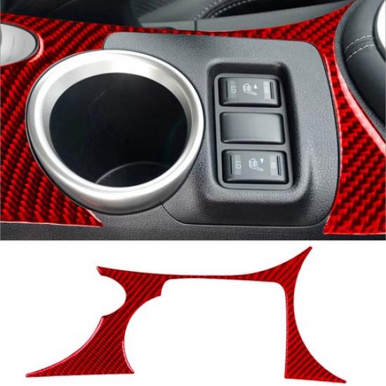 Red Carbon Fiber Interior Center Cupholder Cover Trim For Nissan 370Z 2009-