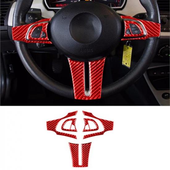 5Pcs Red Carbon Fiber Steering Wheel Kit Cover Trim For BMW Z4 E85 2003-2008