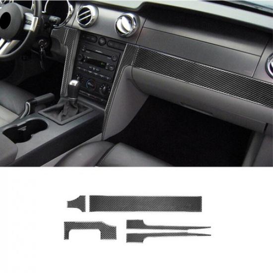 5pcs Carbon Fiber Dashboard Storage Panel Cover Trim For Ford Mustang 2005-2008