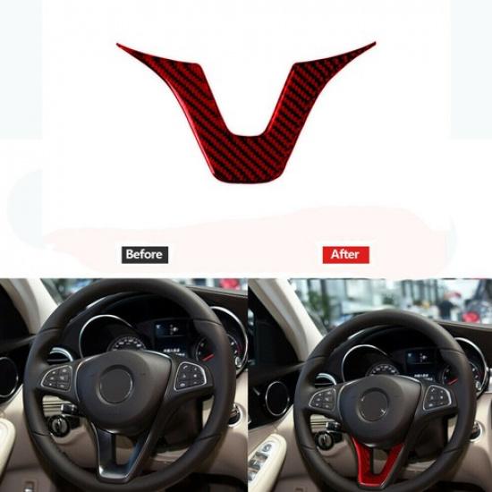 Red ABS Carbon Fiber Pattern Steering Wheel Cover Trim Fits Mercedes Benz W204