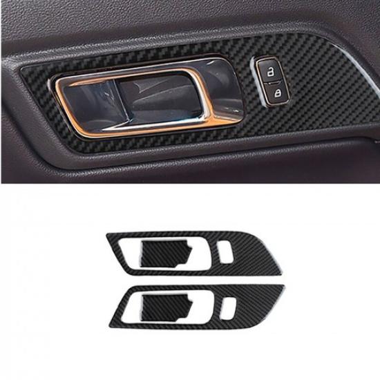 Carbon Fiber Interior Door Handle Panel Cover Trim For Ford Mustang 2015-
