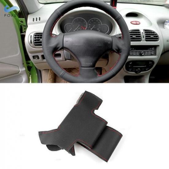 Black+Red Leather Steering Wheel Cover For Peugeot 206 1998-2005 206 SW 2003-05