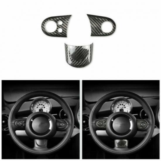 Real Carbon Fiber Car Steering Wheel Button Frame Sticker For Mini Cooper R55