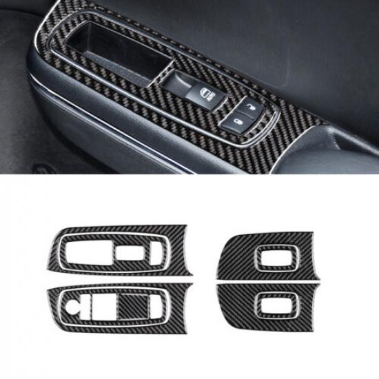 Set Carbon Fiber Window Lift Switch Panel Cover for Dodge Charger 2015- LHD