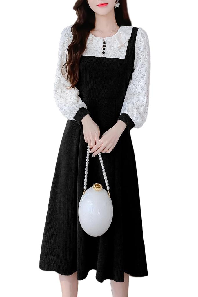 Introducing the new two-tone layered mid-length dress for fall/winter! Made with sturdy corduroy material, it's thick and warm. The autumn/winter color scheme adds an accent, creating a trendy look that's perfect for the season.