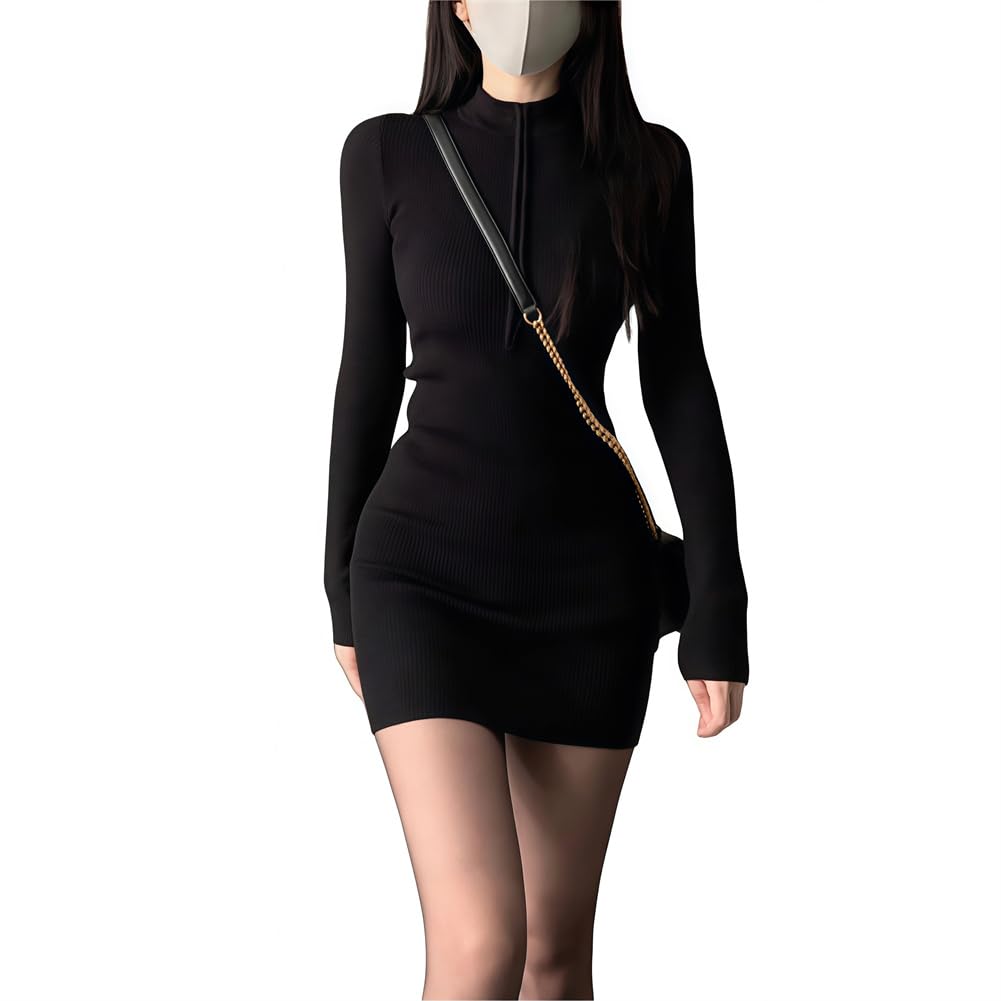 Knit Tight Solid Long Short Slim Mini Simple Outings [SDSXZWG] Women's Dress, Dress, Color, Sleeves, Length, V-Neck, Fit, Sexy, Casual, Stylish,
