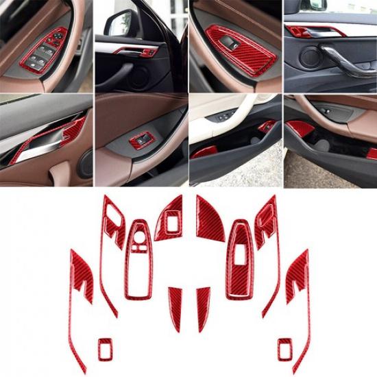 16Pcs Red Carbon Fiber Interior Door Control Kit Cover Trim For BMW X1 F48