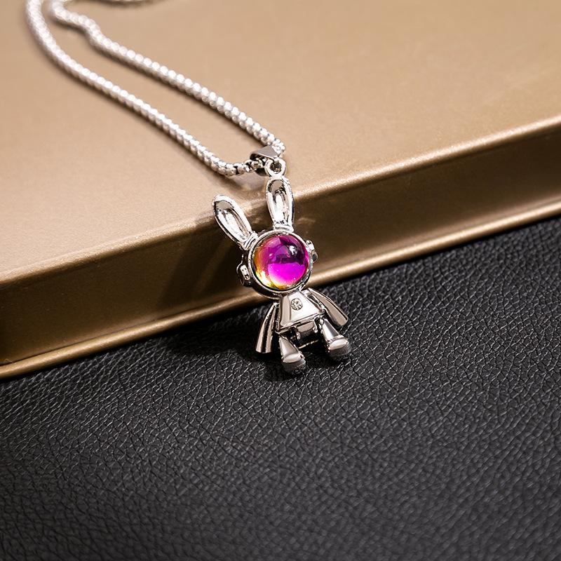 Long Mechanical Space Rabbit Necklace, Cartoon Colorful Gemstone Rabbit Head Pendant, Movable Limbs, High-End Punk Accessories