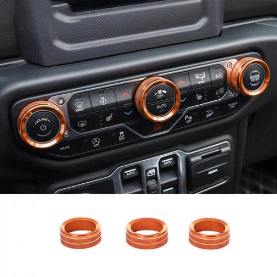 Orange Air Conditioner Switch Knob Trim Ring for 2018+ Jeep Wrangler JL JT 3PCS