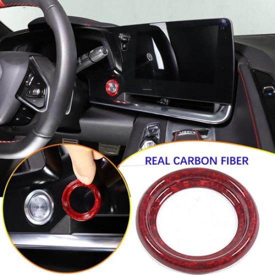 Red Carbon Fiber Push To Start Button Cover Trim For Corvette C8 (Outer Ring)