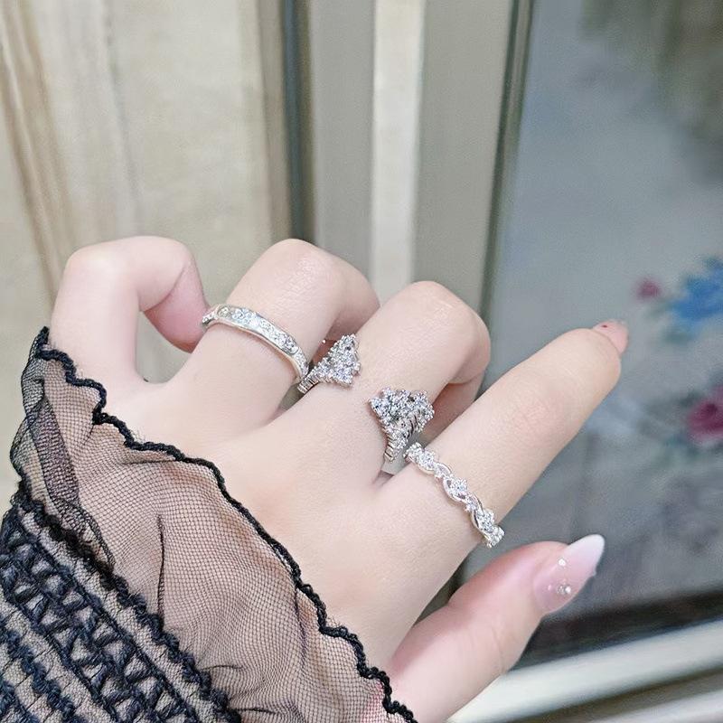 Lace Lace Zircon Dripping Oil Opening Ring Exquisite Princess On The Run Niche Design High-End Girlfriend Ring Girl