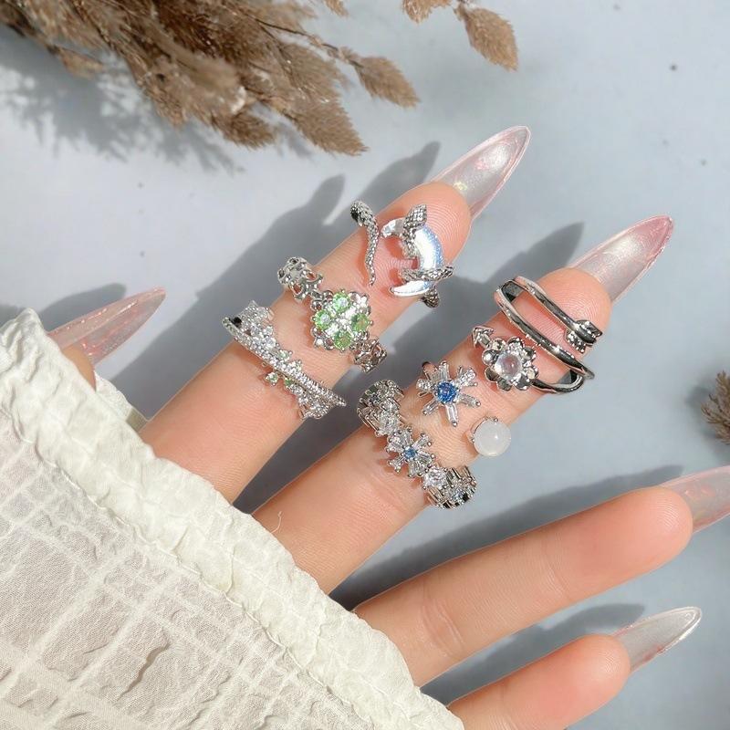 Delicate Serpentine Moon Open Ring Full Of Diamonds, Diamond-Set Zircon Light Luxury, High-End Design, Niche Design, Ring Woman