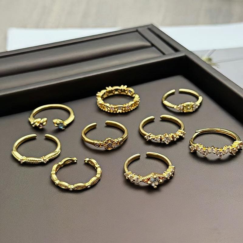 Medieval French Retro Full Diamond Open Ring Fashion High Sense Temperament Niche Design Exquisite Diamond Accessories Women
