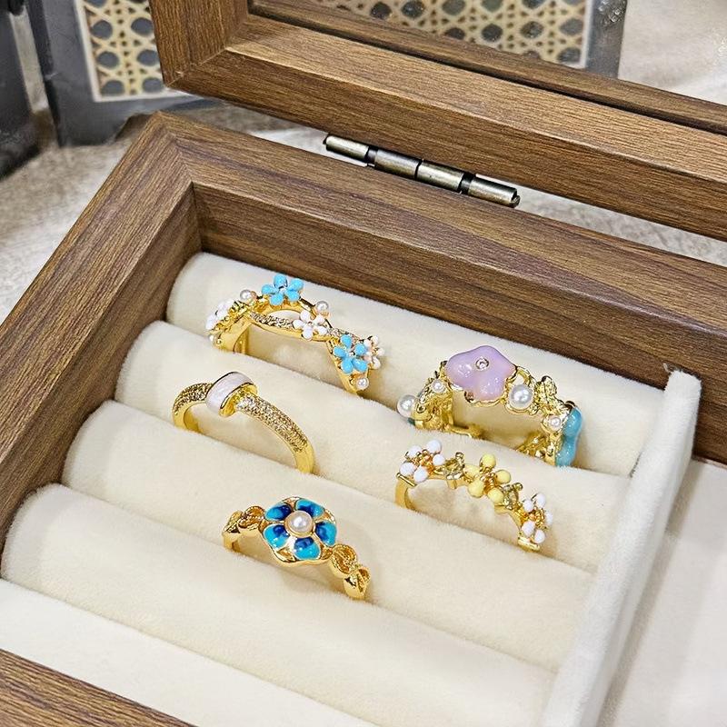 Medieval Gold High-End Elegant Enamel Open Ring Cold Wind Light Luxury Flower Index Finger Ring Female