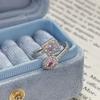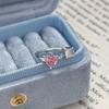 Sweet Crit Pink Zircon Love Open Ring Light Luxury High-End Niche Design Stacked Ring Woman