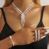 Vintage Full Diamond Zircon Fringed Collarbone Necklace Earrings Set Claw Chain Rhinestone Dress Necklace Women