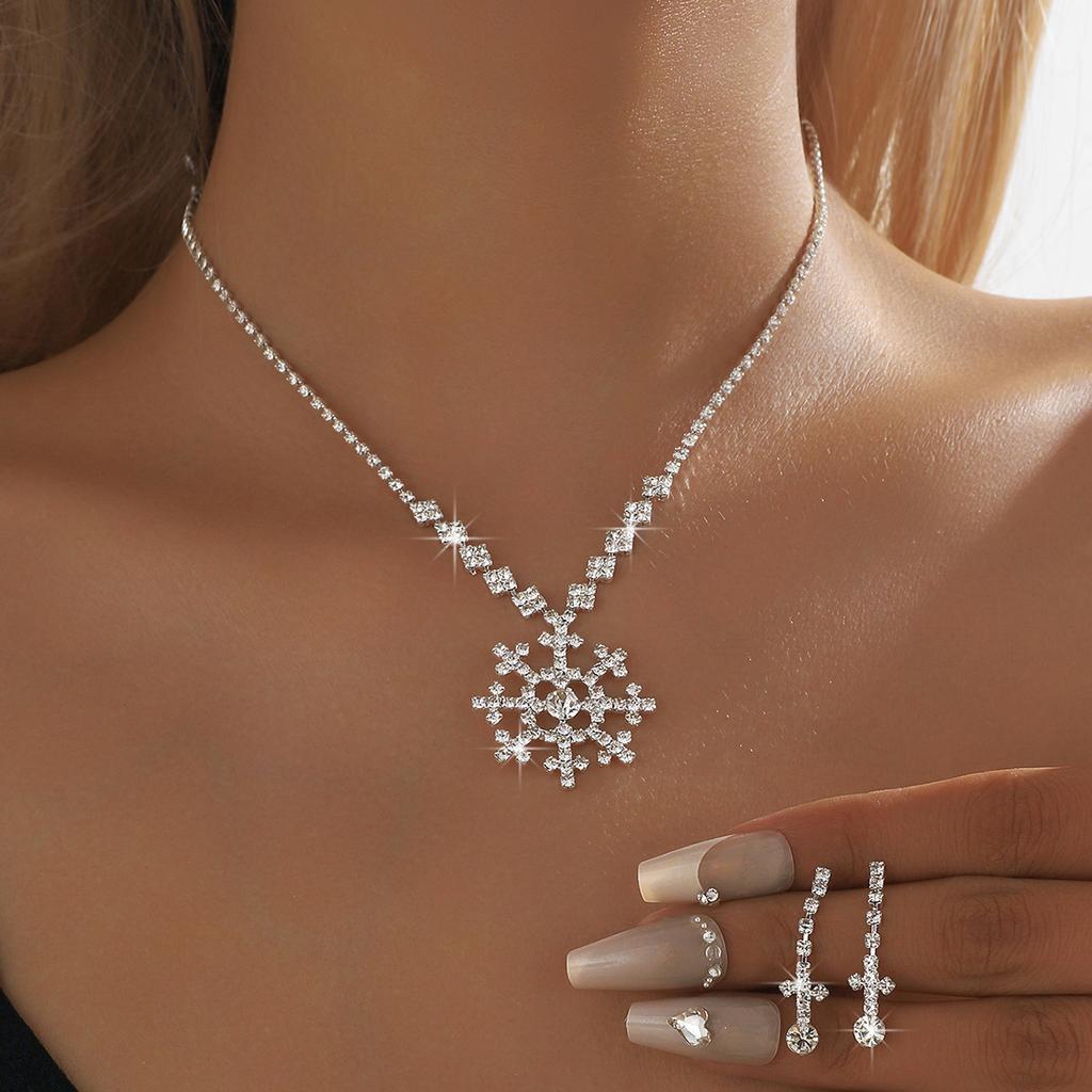 Christmas Snowflake Full Diamond Claw Chain Necklace Earrings Set Holiday Jewelry Two-Piece Set Women