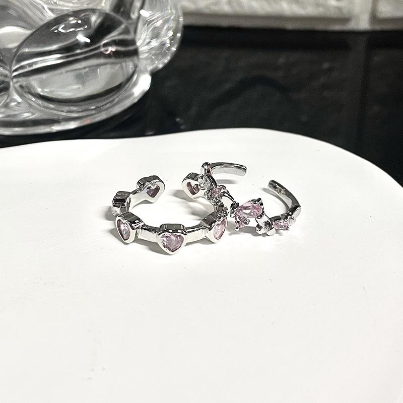 Sweet And Cool Spice Girl Inlaid Pink Diamond Love Ring Set Two-Piece Set Women'S Personality High-End Jewelry