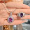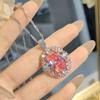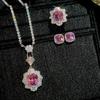 Fashion Luxury Pink Diamond Pendant Necklace Light Luxury Elegant Pigeon Egg Argyle Pink Ring Colorful Treasure Set Women