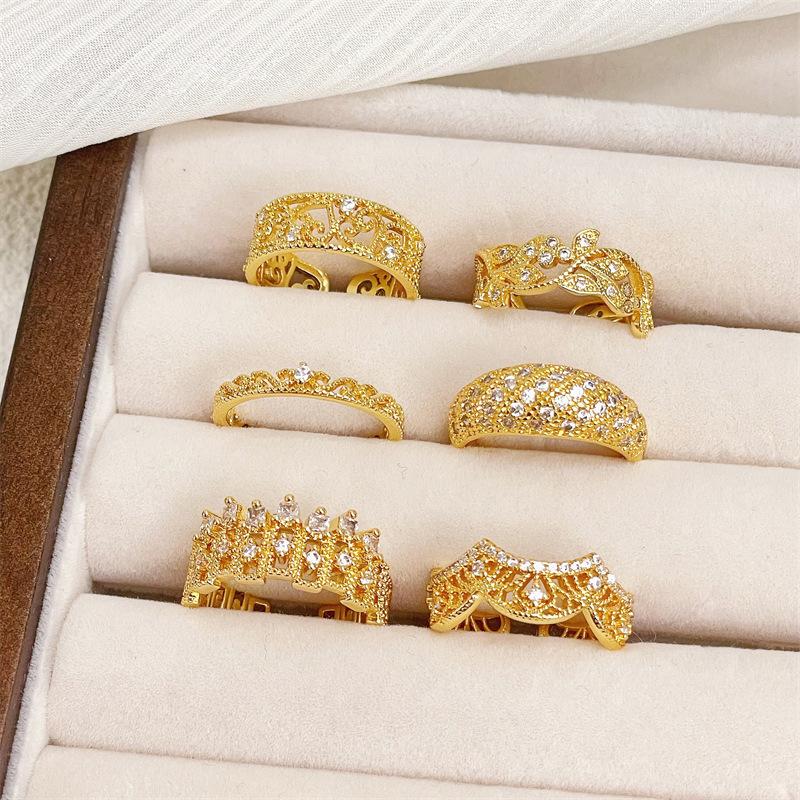 Gold Medieval Lace Slightly Inlaid Ancient Hollow Opening Ring Retro Niche Unique Light Luxury Temperament Female Index Finger Ring