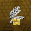 Fashion Personality Yellow Diamond Index Finger Ring, Radiant Ice Flower Cut Diamond Ring Women'S, Niche Light Luxury Jewelry