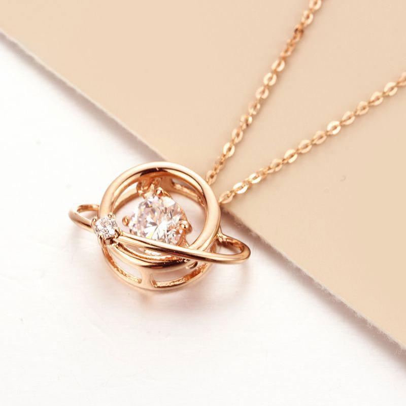 Planet Smart Shiny Zircon Gold Pendant Fashion Rose Gold Plated Collarbone Chain