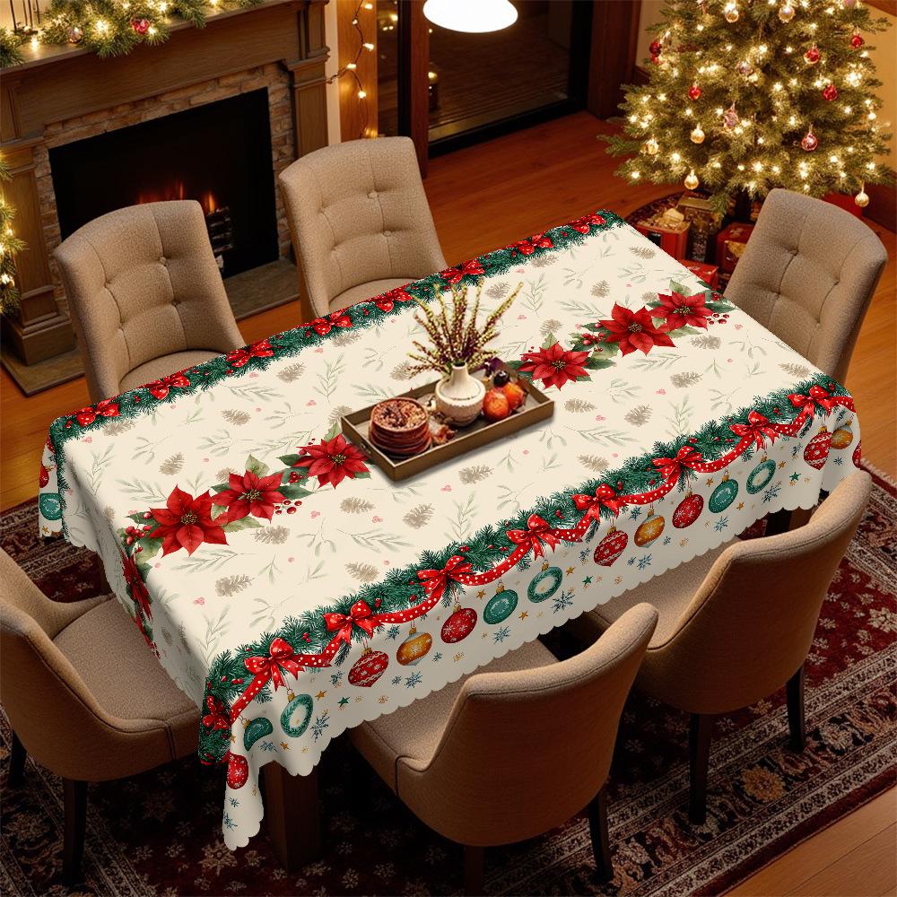 Christmas Tablecloth, Festive Tablecloth Bell Ball, Household Waterproof And Oil-Proof Leave-In Placemat Decoration Scene Arrangement