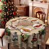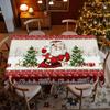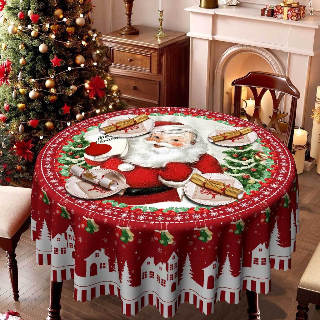 Winter Christmas Tablecloth Santa + Snow Town Red Base Color Printed Dining Table Cloth, Polyester Fabric