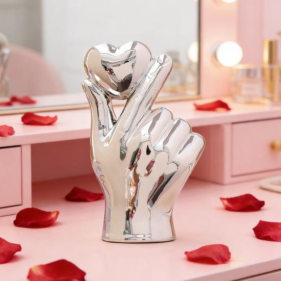Dimensiune Elegantă și Design Compact: Această Sculptură Mâini în Formă de Inimă prezintă o formă compactă care se potrivește fără efort pe birouri, rafturi de cărți sau holuri de intrare.. Dimensiunile sale care economisesc spațiu îl fac o piesă decorativă ideală pentru zone mici sau mari, îmbunătățind ambianța fără a aglomera spațiul dumneavoastră.