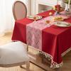 Red Wedding Festive Christmas Day Jacquard Retro Fringed Tablecloth Coffee Table Cloth Dining Table Cloth Cover Towel