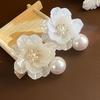 Pearl White Flower Stud Earrings: Elegant Beach Wedding Jewelry