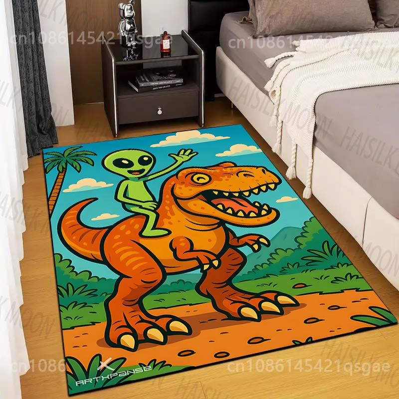 1PC Funny Aliens and Dinosaurs Carpet for Living Room Bedroom Bathroom Mat Creative Doormat Sofa Home Decor Large Size