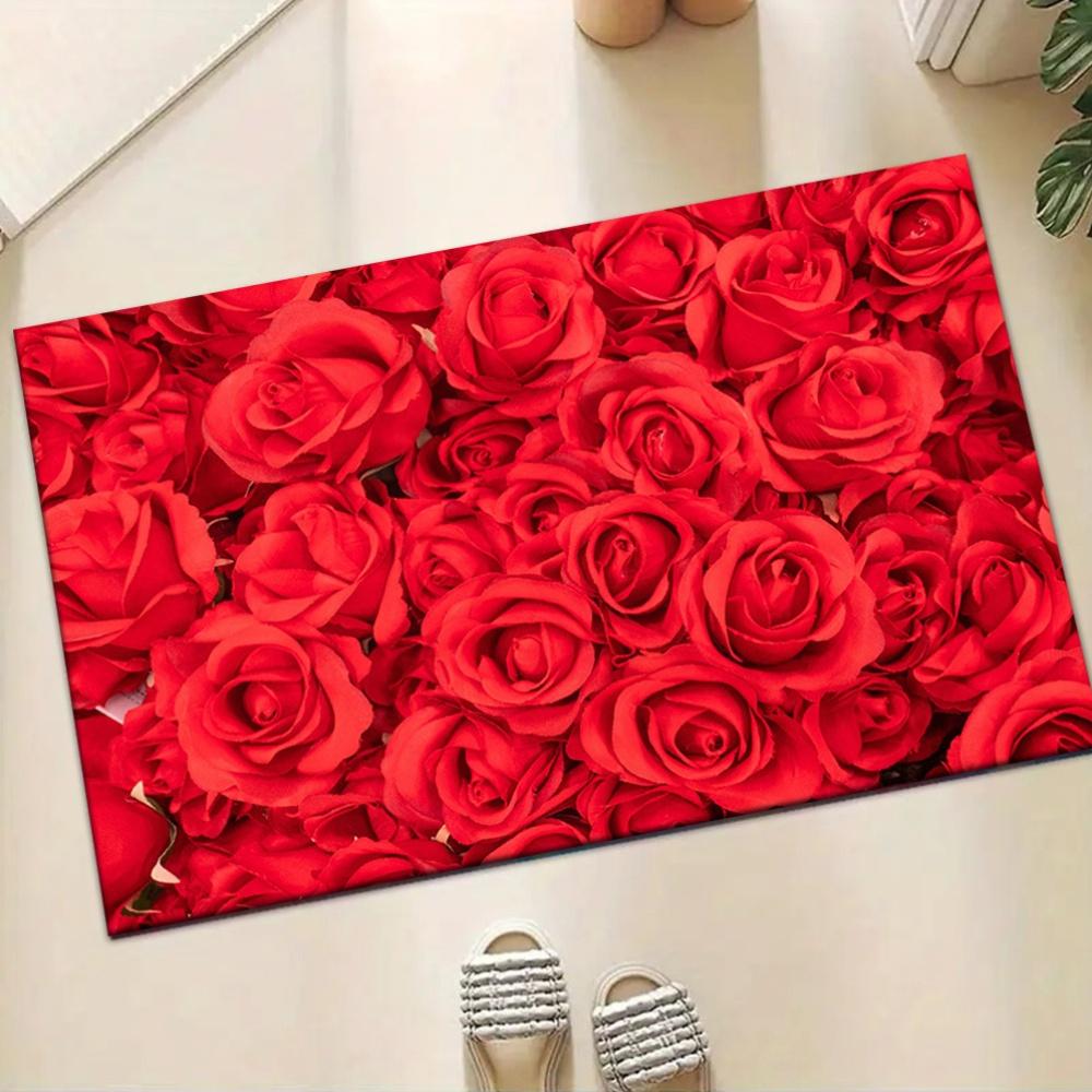 Valentine's Day Carpet 2DBright Red Rose Doormat Welcome Mat Carpet For Live Room Rug For Bedroom Kitchen Rug Home Dec