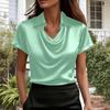 Women's Fashionable Solid Color Lapel Short Sleeved Temperament Pullover Shirt Top