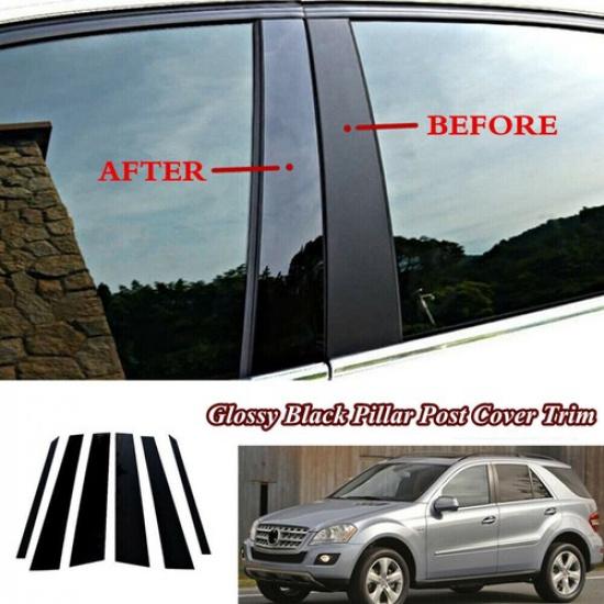 6 x Glossy Black Car Door Pillar Post Cover Trim For Benz ML350 ML550 W164 06-11