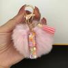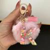 Trend Acrylic Pink Pompom Glitter 26 Initials Letter Keychain With Fluffy Resin Alphabet Charms Key Pendant Party Gift