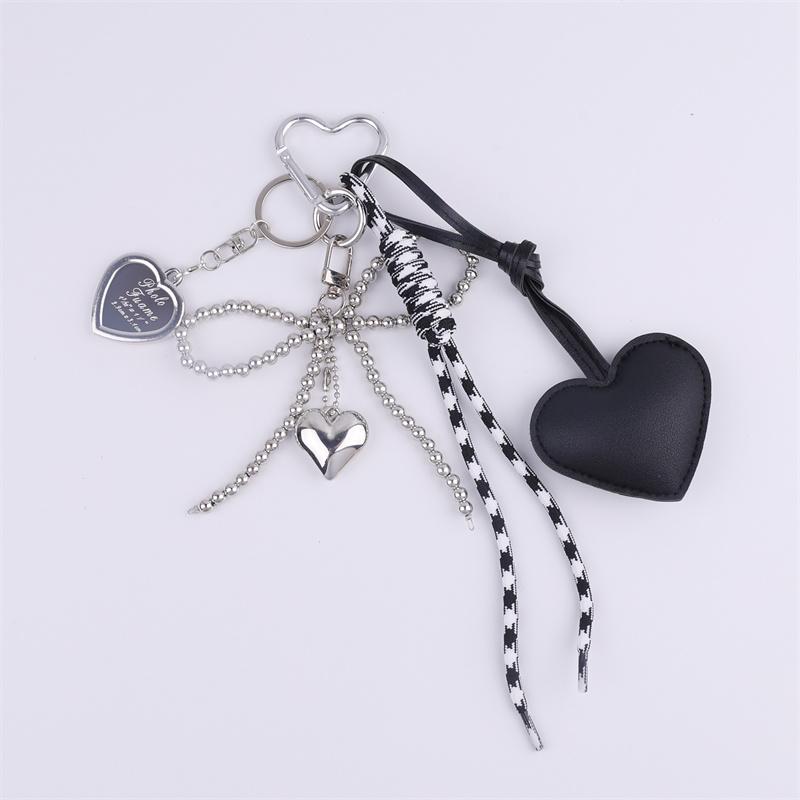 Leather Heart Bow Keychain Delicate Beaded Keyring Car Key Holder Bag Pendant Decoration For Girls Gift
