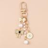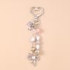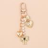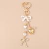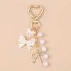Aihua Cute Y2K Metal Pearl Love Heart Bowknot Key Chain for Women Girl Handbag Pendants DIY Key Ring Handmade Jewelry Gifts