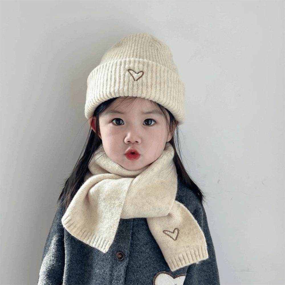 Love Heart Embroidery Knitted Hat Scarf Set Solid Color Neck Warmer Set Ski