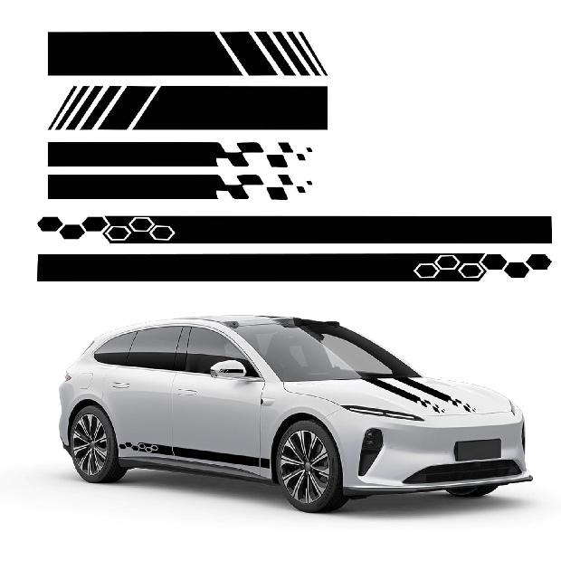 Augeny 6PCS Car Hood & Side Stripe Decals, Modified Auto Rearview Mirror Decal, Universal Graphic Stripe Decor For Car Skirt Roof Bumper (Style1,