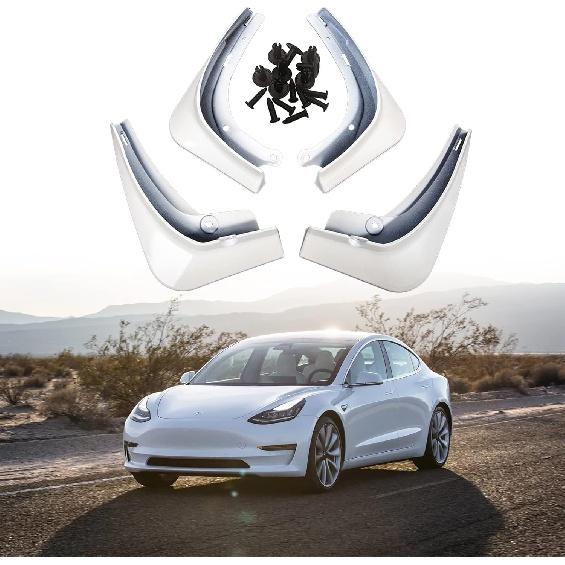 Mud Flaps For Tesla Model 3 2016- Splash Guards Front Rear Fender Protection Mudflaps No Need To Drill Holes (Set Of 4, White)