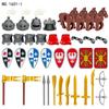 Medieval Military Solider Figure Weapon Accessory Sets Building Blocks Crusader Knight Armor Warrior Shield Sword Flag Brick Toy