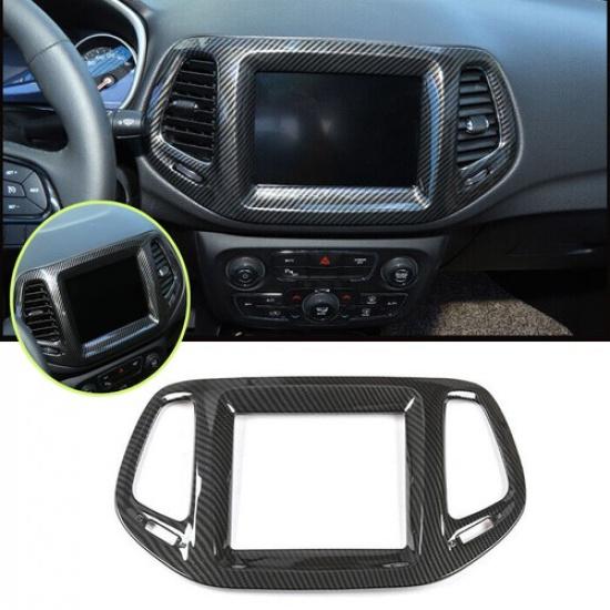 Carbon Fiber 8.4" Dashboard GPS Navigation Panel Trim Frame For Jeep Compass 17+