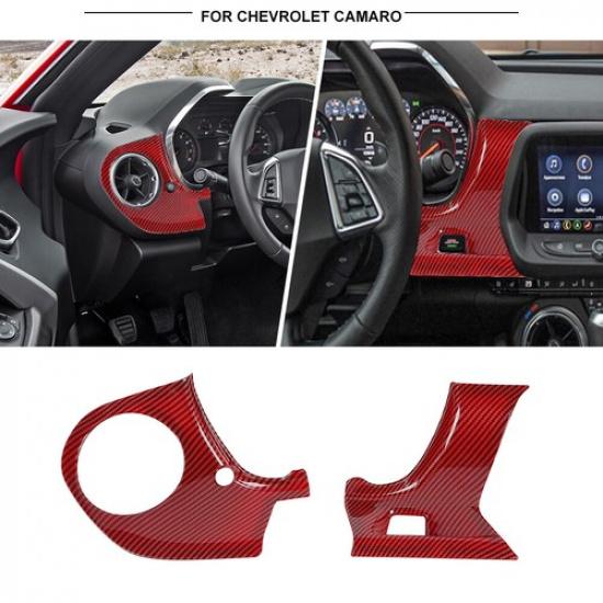 Red Carbon Center Console Dashboard Panel Cover Trim for Chevrolet Camaro 2016+